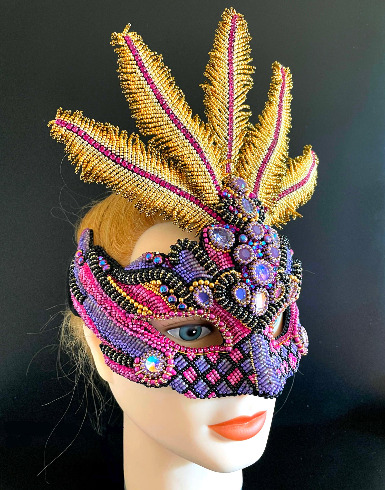 A mask to adorn any lavish queen at her masquerade ball.