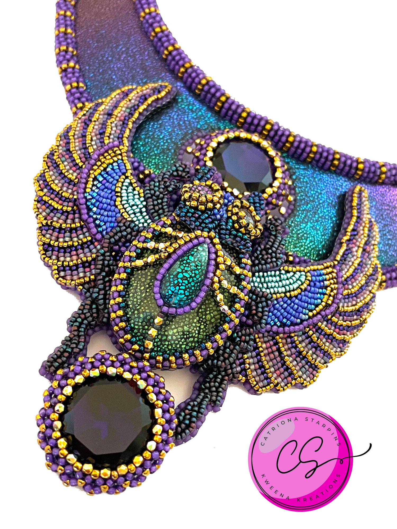 Catriona teaches eager students the fine art of bead embroidery and beadweaving. Classes are run in person and online via zoom, giving her students a creative outlet and a way to pause from their busy lives. They range in difficulty from absolute beginner to advanced masterclasses. After a class with Catriona Starpins, students can wear their creations with pride letting others know where they learnt such wonderful beading skills.